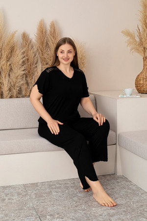 “Bambu Kumaş Büyük Beden Kadın Dantelli Uzun Kollu Pijama Takımı – Yumuşak, Nefes Alabilir, Şık ve Rahat, M-5XL” - Image 1