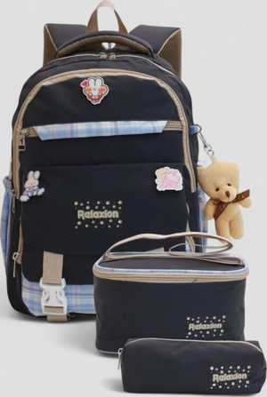 Relaxion 1396 Kore Tarzı Unisex Çocuk Üçlü Set İlkokul Sırt Çantası - NKT02206-siyah-mor-TEKEBAT - Image 1