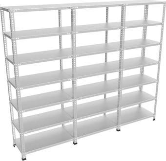 Raffar 7 Katlı 3’lü Bitişik Galvaniz Çelik Raf. Depo, Dosya Raf
