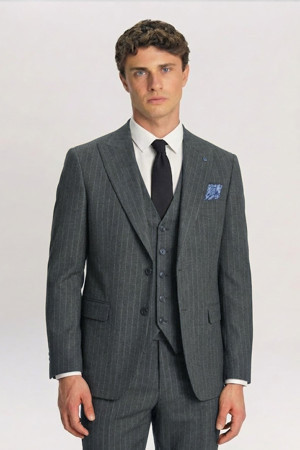 Erkek Antrasit Regular Fit Mono Yaka 6 Drop Pamuk Karışımlı Astarsız Takım Elbise