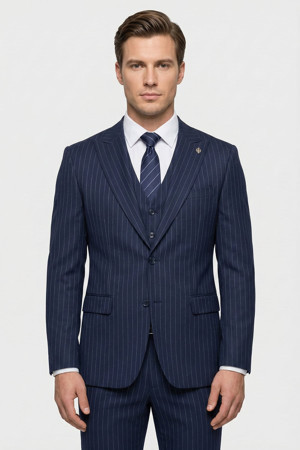 Erkek Yelekli Viskon Karışımlı 8 Drop Klasik Lacivert Takım Elbise