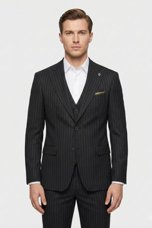 Erkek Yelekli Viskon Karışımlı 8 Drop Klasik Siyah Takım Elbise