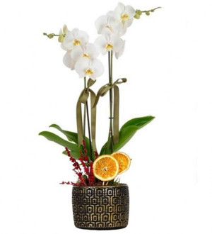 Premium Gold Vazolu 2 Dal Beyaz Orkide
