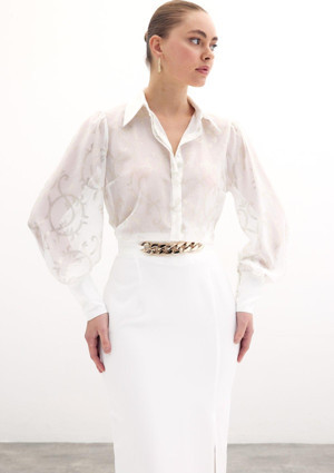 Geniş Manşetli Şifon Gömlek - Ekru