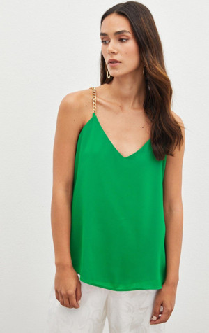 Zincir Askılı Salaş Bluz - Yeşil