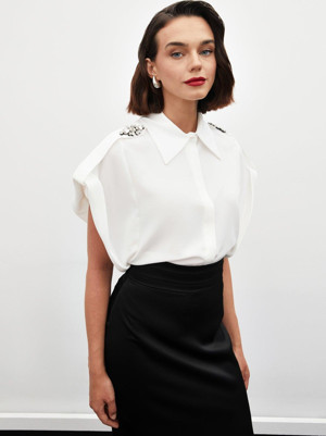 Omuz Aksesuarlı Kısa Kol Gömlek - Ekru