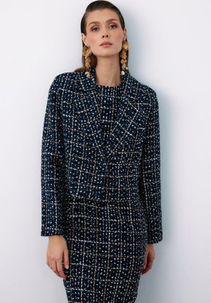 Düğmeli Tüvit Kısa Ceket - Lacivert