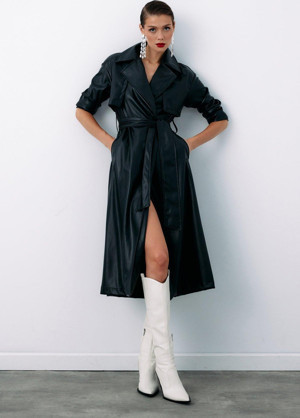 Kuşaklı Uzun Deri Trenç - Siyah