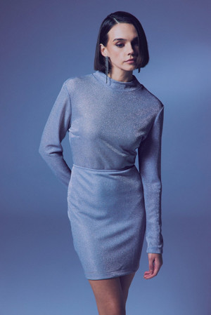 Dik Yaka Simli Bodysuit - Gümüş - Image 1