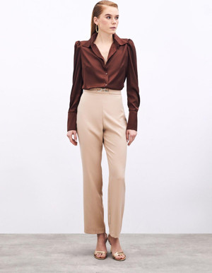 Sateen Aksesuar Detaylı Pantolon - Camel