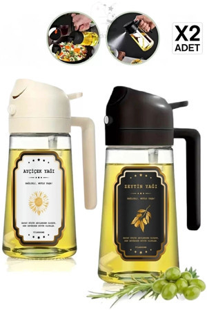 Tilbe Home 2 Adet Çift Fonksiyonlu Cam Yağdanlık 450ml Zeytinyağı Sıvıyağ Şişe Sprey Airfryer Yağlık Sirkelik