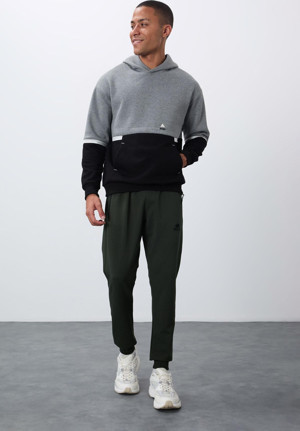 Gri Melanj Siyah Pamuklu Kalın Yumuşak Dokulu Oversize Fit Basic Erkek Eşofman Takım - 85261