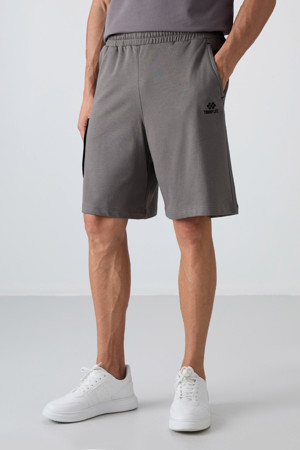 Koyu Gri Pamuklu Kalın Yumuşak Dokulu Comfort Fit Baskılı Erkek Şort - 81266