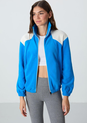 Saks Kalın Yumuşak Dokulu Dik Yaka Oversize Nakışlı Polar Kadın Sweatshirt - 97293