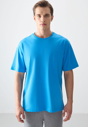 Petrol Mavi %100 Pamuk Kalın Yumuşak Dokulu Oversize Fit Basic Erkek T-Shirt - 88353