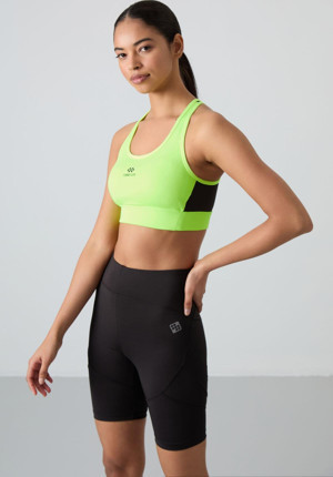 Neon Sarı Çapraz Sırt Detaylı Slim Fit U Yaka Pedli Kadın Spor Büstiyer - 97121