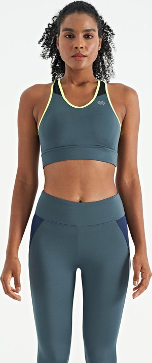 Orman Yeşili Renk Bloklu Sırt Baskı Detaylı Dar Kalıp Kadın Büstiyer - 97253