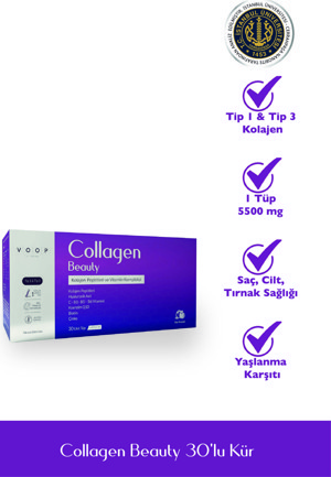 Collagen Beauty Tip 1 ve Tip 3 5500 mg Nar Aromalı Hyaluronic Asit+Q10+Biotin+Çinko 30 Saşe 7 gr