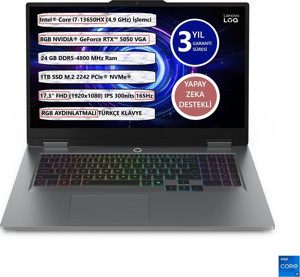 Lenovo Loq 17IRX10 INTEL CORE I7-13650HX 24GB DDR5 1TB SSD 8 GB RTX 5050 17,3" 165 Hz Freedos 83JH006CTR Gaming Taşınabilir Bilgisayar