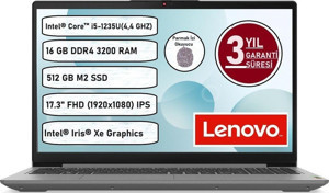 Lenovo Ideapad 3 17Iau7 Intel Core-I5 1235U 16 Gb 512 Gb Ssd Freedos 17.3" 82Rl00Cltx Taşınabilir Pc