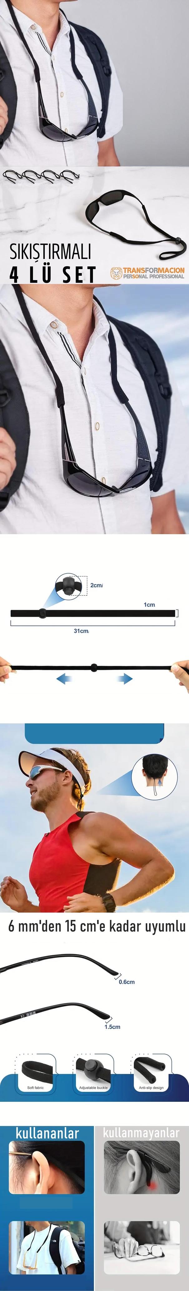 ÖNE ÇIKAN ÖZELLİK : Gözlüğünüzün ucuna(şakak kısmına gelen yer) KORDON ucundaki kısım geçirilerek kullanılır ve burayı sıkıca kavrar
