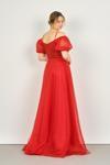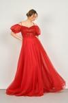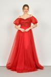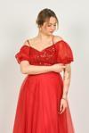 Detay: Uzun, balon kol, üst payetli, alt tül detaylı, astarlı abiye elbise;