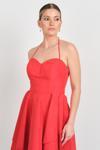 Detay: Tafta kumaştan üretilen, boyundan bağlamalı, eteği katlı, astarlı ve fermuarlı abiye elbise, zarafeti ve modern şıklığı bir araya getiren etkileyici bir tasarımdır. Tafta kumaşın kendine özgü parlak ve tok dokusu, elbiseye asil bir duruş kazandırırken, boyundan bağlamalı tasarım feminen ve sofistike bir hava yaratır. Katlı eteği hareketli ve hacimli bir görünüm sunarak göz alıcı bir siluet oluştururken, astarlı yapısı konforlu bir kullanım sağlar. Fermuar detayı sayesinde pratik bir şekilde giyilip çıkarılabilen bu abiye elbise, özel davetlerde, düğünlerde ve gala gecelerinde fark yaratmak isteyenler için mükemmel bir seçimdir. Zamansız şıklığı ve modern detayları bir araya getiren bu tasarım, stil sahibi kadınların gardırobunda mutlaka bulunması gereken parçalar arasında yer alıyor. Eğer benzersiz bir gece elbisesi arıyorsanız, bu model tam size göre;