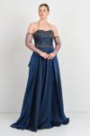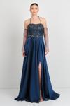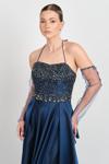 Detay: Boyundan bağlamalı tasarımıyla zarif bir duruş sunan bu maxi abiye elbise, saten kumaşıyla ışıltılı bir görünüm yaratırken, üst bedendeki tamamen taş işlemelerle göz alıcı bir şıklık kazandırır. Derin yırtmaç detayı feminen bir dokunuş sağlarken, sırt kısmındaki çapraz ip bağlama modern bir stil sunar. Seyyar eldivenleriyle farklı kombin seçenekleri sunan bu elbise, astarlı yapısı ve gizli fermuarıyla konforlu bir kullanım vadeder;