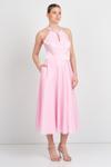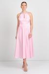 Kadın Halter Yaka Saten Midi Abiye Elbise 5624 Pembe