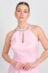 Saygın Kadın Halter Yaka Saten Midi Abiye Elbise 5624 Pembe