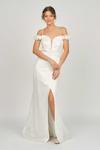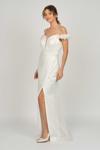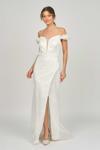 Detay: Anvelop etek, yandan yırtmaçlı, uzun, astarlı abiye elbise;