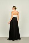 Detay: Abiyenin boyun kısmındakii taş işlemeli zincir ile ürün askılı olarakta kullanılabilir. Uzun, sırt dekolteli, astarlı, abiye elbise;
