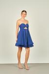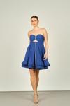 Detay: Taş zincir detaylı(zincir boyundan bağlama şeklinde de kullanılabilir), eteği volanlı, mini, astarlı, abiye elbise;