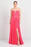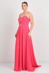Saygın Kadın Straplez Taş Detaylı Yırtmaçlı Uzun Abiye Elbise 5656 Mercan