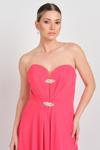 Kadın Straplez Taş Detaylı Yırtmaçlı Uzun Abiye Elbise 5656 Mercan