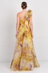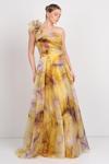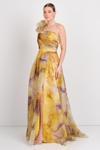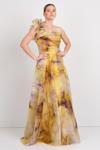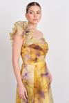 Detay: Tek omuz tasarımıyla zarif bir asimetri sunan bu desenli maxi abiye elbise, hafif şifon kumaşı ve drapeli kloş kesimiyle akıcı bir siluet yaratır. Omuzda sabit taşlı fırfır detayı elbiseye göz alıcı bir dokunuş katarken, sırt kısmındaki çapraz ip bağlama detayı modern ve etkileyici bir görünüm sunar. Astarlı yapısı ve gizli fermuarı sayesinde konforlu bir kullanım sağlar; özel davetlerde şıklığı ve zarafeti bir arada yaşamak isteyenler için ideal bir tercihtir;
