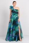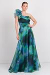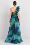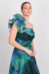 Detay: Tek omuz tasarımıyla zarif bir asimetri sunan bu desenli maxi abiye elbise, hafif şifon kumaşı ve drapeli kloş kesimiyle akıcı bir siluet yaratır. Omuzda sabit taşlı fırfır detayı elbiseye göz alıcı bir dokunuş katarken, sırt kısmındaki çapraz ip bağlama detayı modern ve etkileyici bir görünüm sunar. Astarlı yapısı ve gizli fermuarı sayesinde konforlu bir kullanım sağlar; özel davetlerde şıklığı ve zarafeti bir arada yaşamak isteyenler için ideal bir tercihtir;