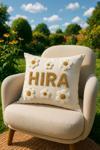 Duck keten Krem kumaş üzerine el emeği olarak punch işleme yapılmaktadır.