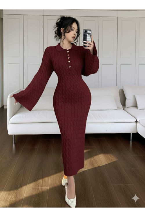 - Örgü dokuma tipi, elbiseye dokulu bir dokunuş katar.