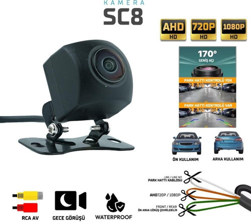 SC8, 170° geniş açılı lensi, AHD 720P/1080P çözünürlük desteği ve gece görüş özelliği ile park ve manevralarda yüksek görüş kabiliyeti sunan profesyonel bir araç kamerasıdır. Su geçirmez gövdesi ve ayarlanabilir montaj aparatı sayesinde her araca kolayca uyum sağlar.