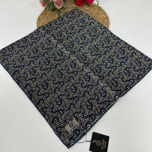 Vissona 100% Twill İpek Geometrik Desenli Bebe Mavisi - Saks Renkli 90x90 Dikim Şekli : El Dikişi Eşarp