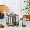 7 parça baharat seti döner standlı -5.6*13.7cm -100 ml / cam paslanmaz çelik, ABS, silikon,demis stand