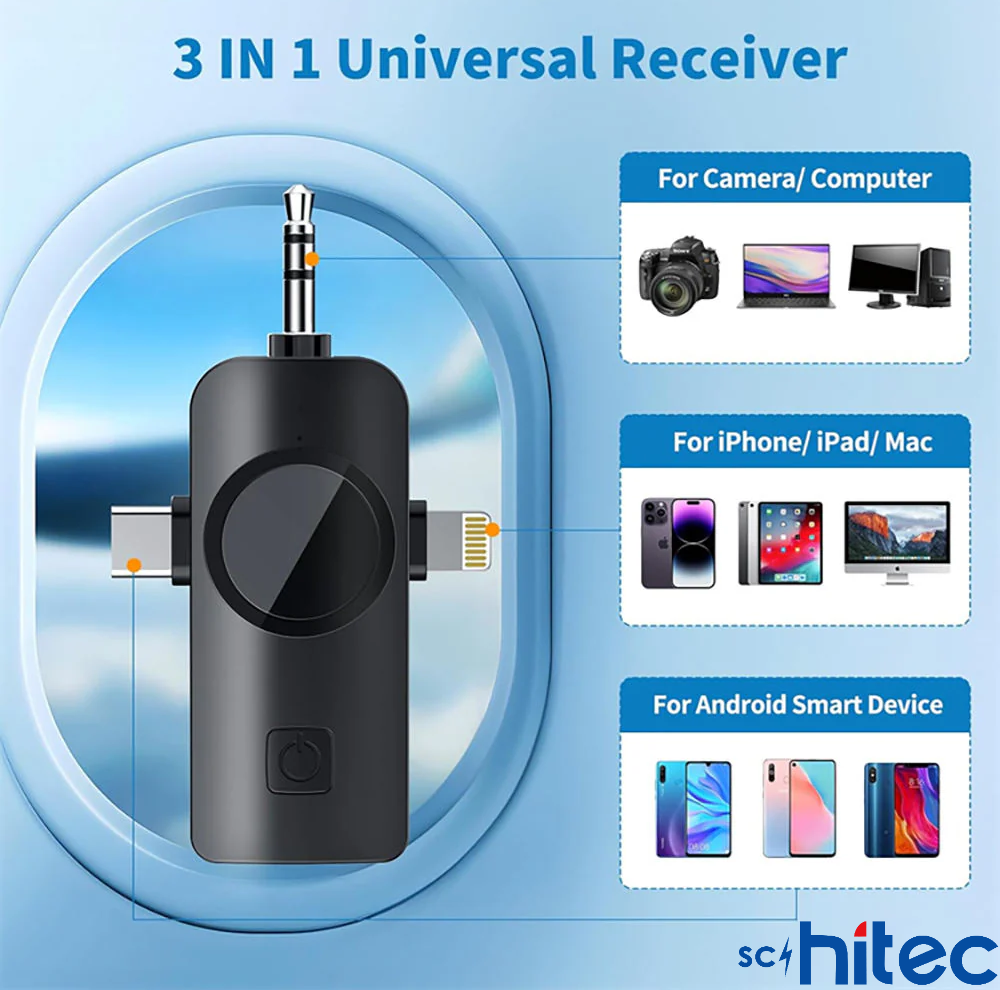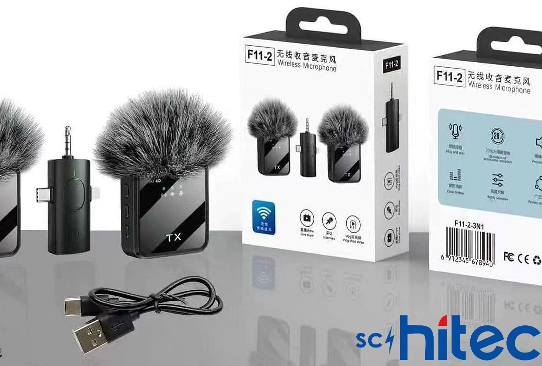 ScHitec 3in1 Type-C Lightning 3.5mm Çıkışlı İkili Kablosuz HD Wireless Yaka Mikrofonu F11-2