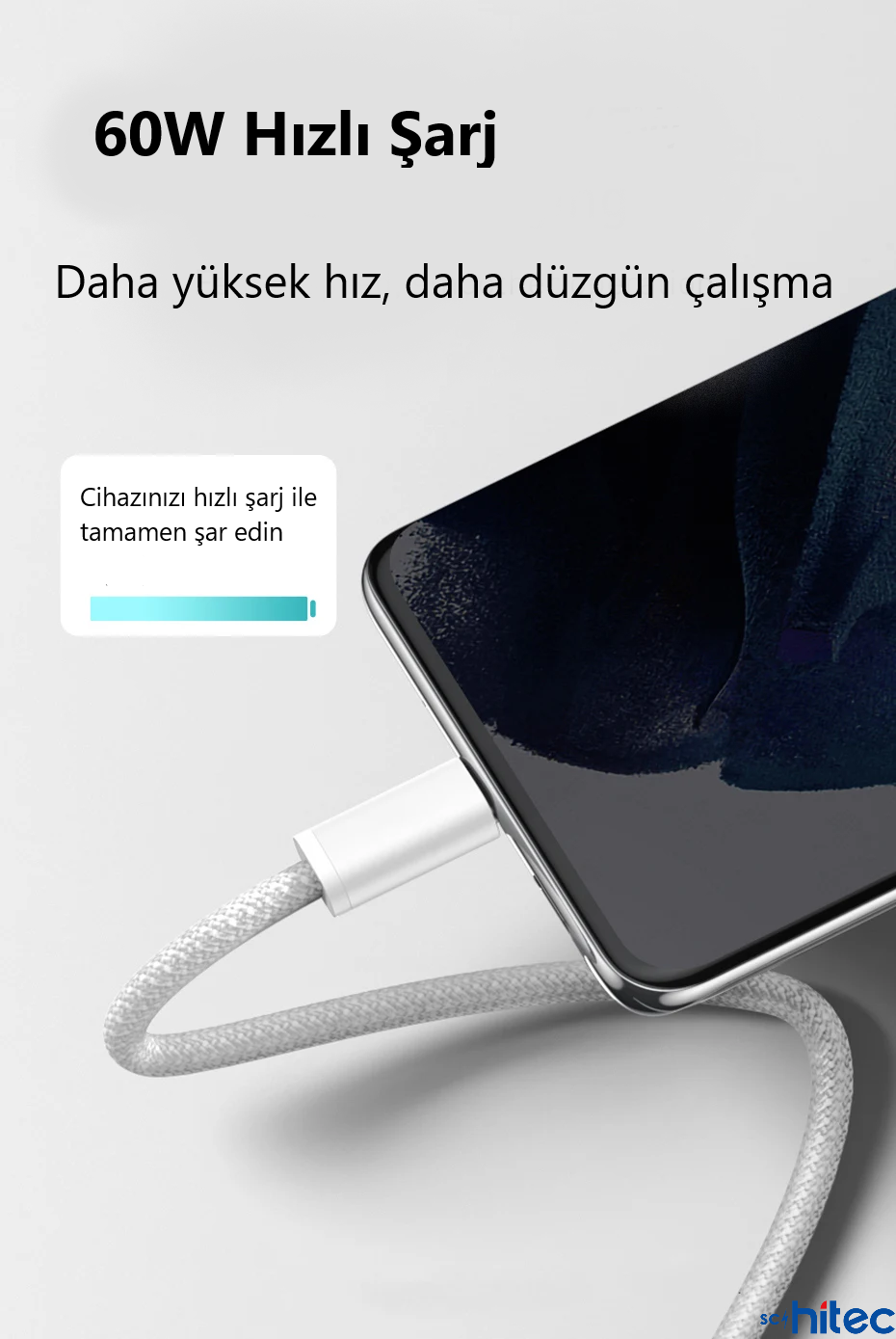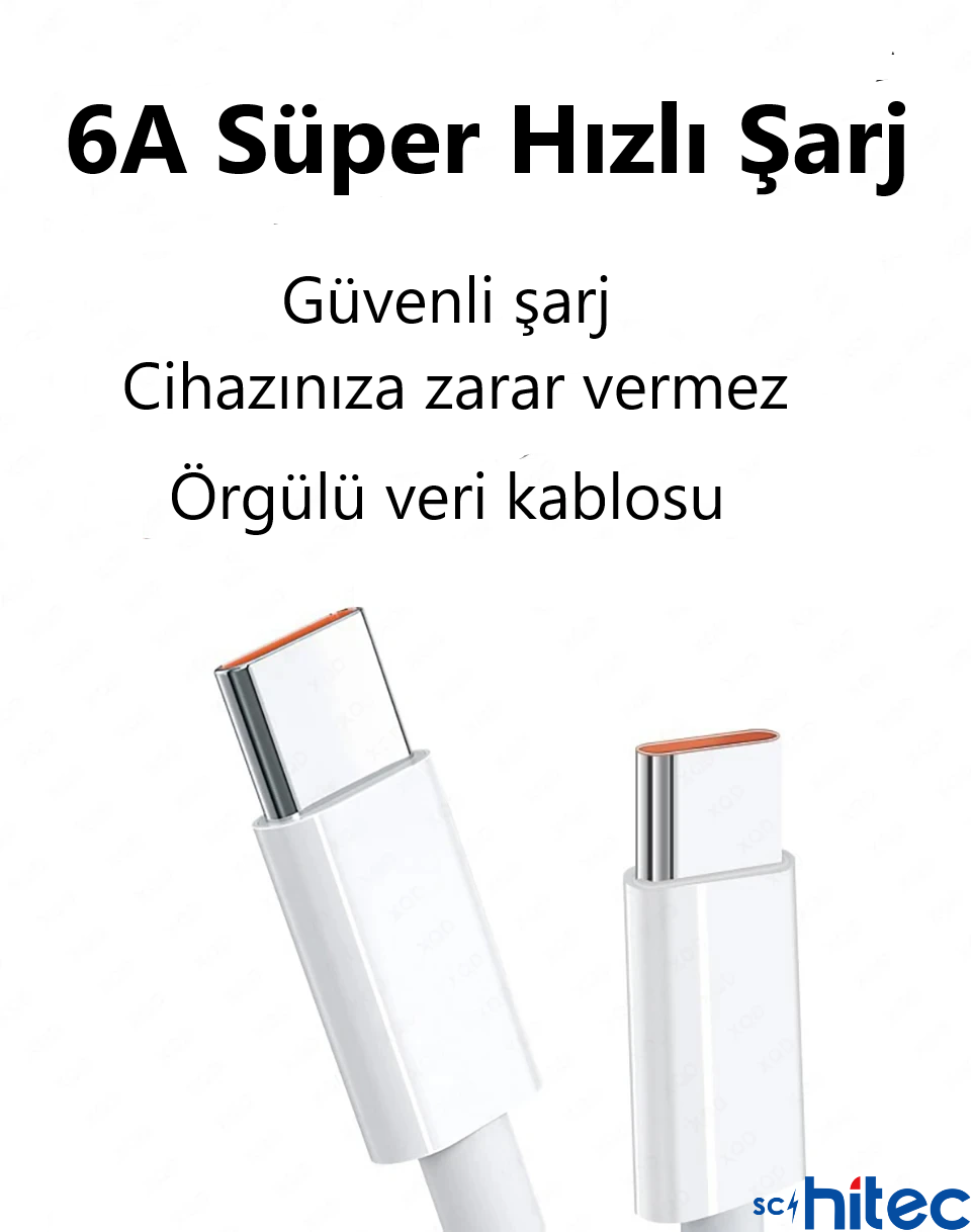 ScHitec 6A 60W Apple İphone 15 ve Üzeri Uyumlu Type-C to Type-C Örgülü Hızlı Data ve Şarj Kablosu Beyaz