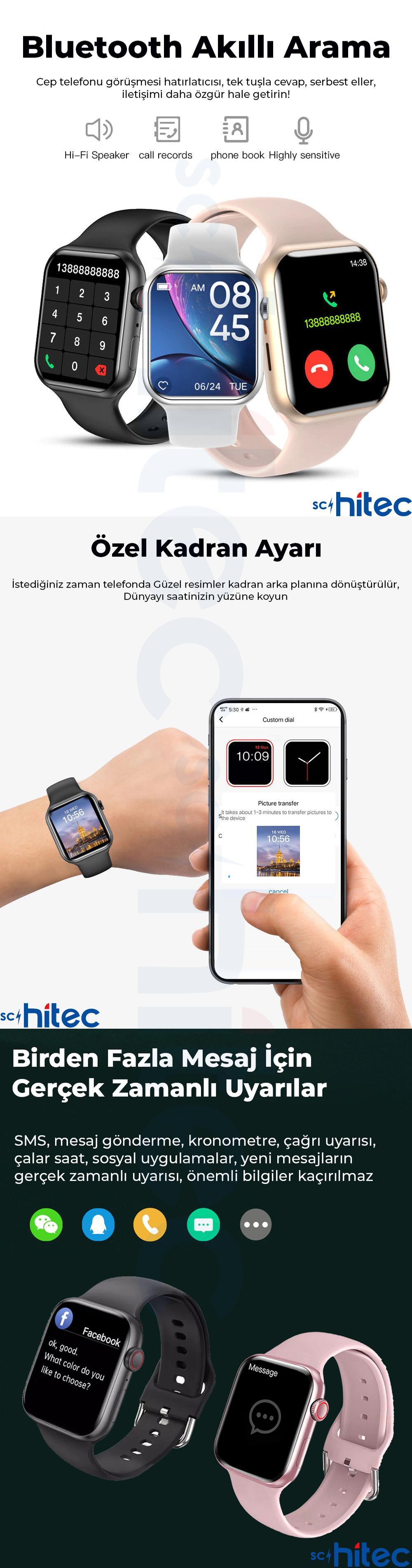 Gün içerisinde kusursuz bir deneyim sunarak zamanı en mükemmel şekilde kontrol etmenize yardımcı akıllı saat sayesinde en yüksek performansı yaşayabilirsiniz. Kusursuz yapısı sizi asla yarı yolda bırakmaz.Yenilikçi bir deneyim sunan akıllı saatin kusursuz yazılım ve donanım özellikleri konforunuz için mükemmel bir performans oluşturarak beklentilerinizi en üstün kalite üzerinden değerlendirmenize olanak tanır.Her bilek yapısına uygun hafif formu sayesinde dilediğiniz her kullanımda ultra konfor sağlayan yapısı ağırlık hissi yaşatmaz. Bu sayede gün boyunca bilekte varlığını bile hissetmenden gerçek zamanlı bildirimler alabilirsiniz.Birçok özelliği sayesinde dileğiniz şekilde zamanı kullanabilir. Son derece mukavemet gücü yüksek malzeme ile tasarlanarak sınıfının en iyi hizmetini sunar.Kusursuz bir yapısı bulunan akıllı saat yediden yetmişe her türlü kullanıcı için uygundur. Ekran üzerinden dilediğiniz ayarlamayı yapabilir ve gün içinde gerçek zamanlı adım sayar özelliğini kullanabilirsiniz.İster egzersiz sırasında isterseniz ev veya iş yerinde mükemmel bir performans yaratarak fonksiyonel özelliklerini ayrıcalıklı bir şekilde sunan akıllı saat sayesinde sizde teknolojinin gerisinde kalmadan mükemmel bir deneyim gerçekleştirebilirsiniz.Değiştirilebilir kordon sayesinde her zaman ilk gün ki gibi kullanım ve her kombine özel uyum imkanı sağlamaktadır. Su altı kullanımı için uygun değildir, sıçramalara karşı dayanıklıdır.
