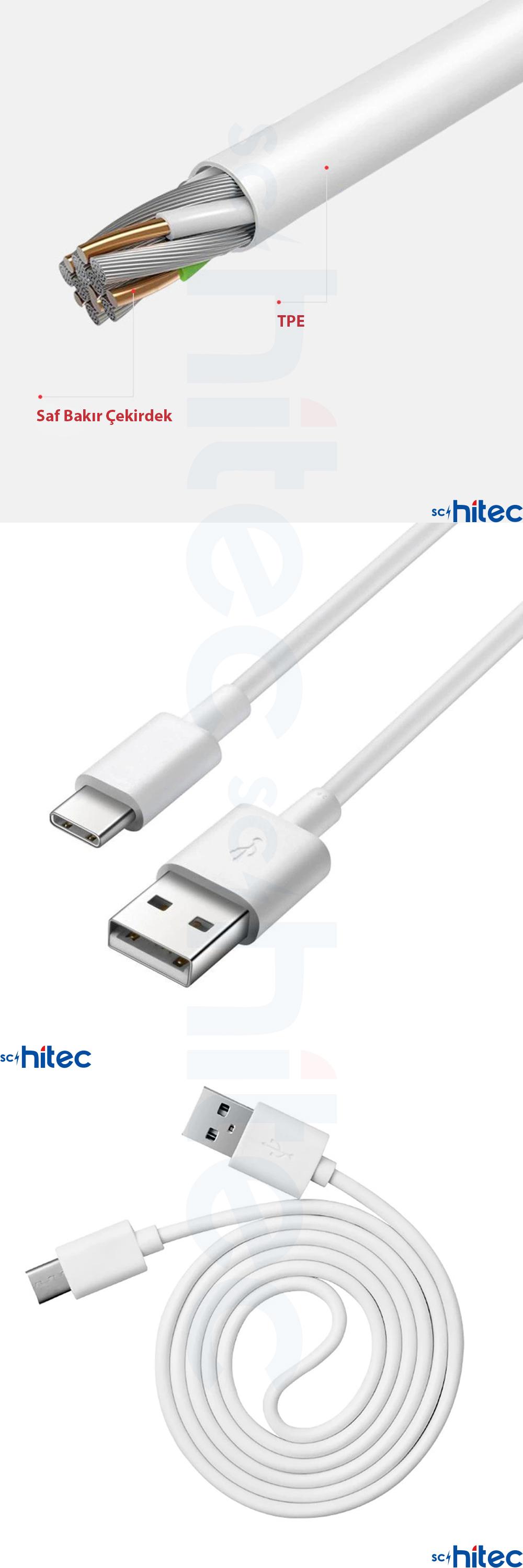 ScHitec Tecno Camon 20 İle Uyumlu UsbA to Type-C 2Metre Data ve Hızlı Şarj Kablosu