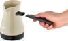 - Dört kişiye kadar Türk kahvesi yapabileceğiniz elektrikli cezveye dilediğiniz miktarda Türk kahvesi ekliyor, fincan ile ölçerek su ilave ediyor ve düğmesine basıyorsunuz.
