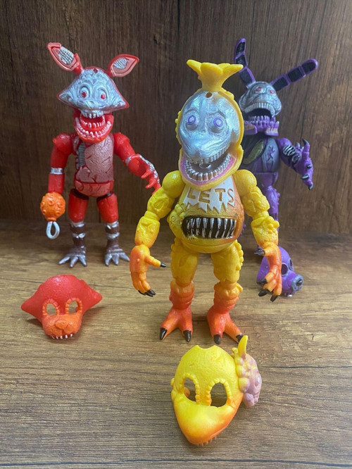 Five Nights at Freddy's serisinin sevilen karakterleri Bonnie, Chica ve Freddy'nin ışıklı versiyonlarıyla tanışın! Bu üçlü figür setinde her karakterin benzersiz özellikleri ve aksesuarları yer alıyor