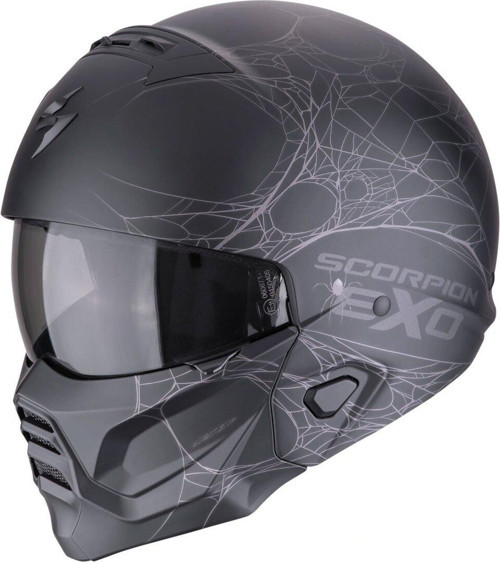 Scorpion EXO COMBAT 2 Spider Web Modüler Motosiklet Kaskı Mat Siyah / Gümüş