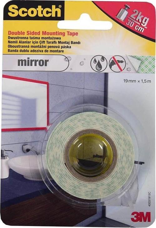 Scotch Ayna Montaj Bandı 19Mm X 1,5 Metre 4496W-1915P 4046719732289 Suya ve neme karşı dayanıklı montaj bandı.